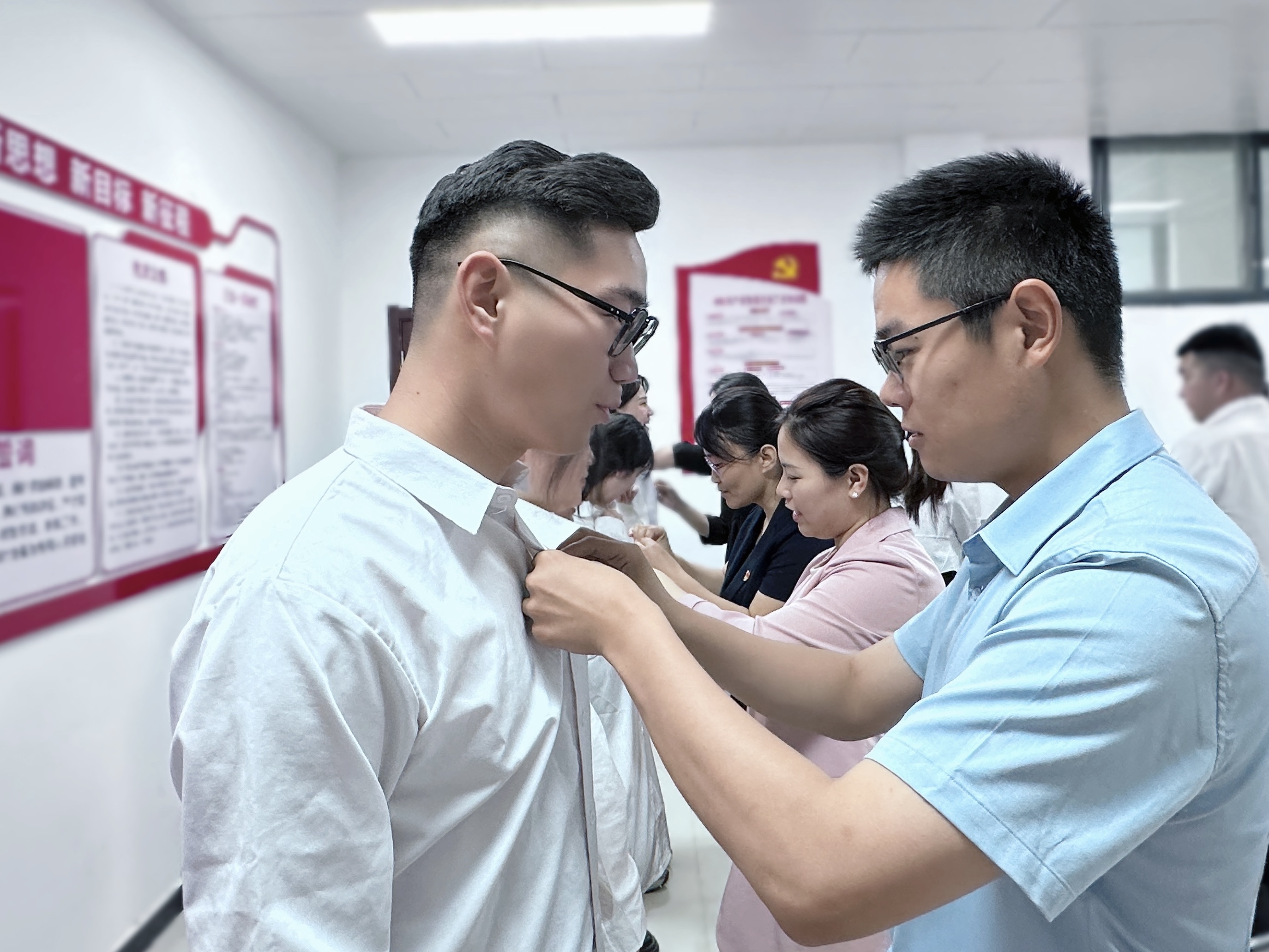 随后,入党介绍人为18同志佩戴党员徽章、赠送书籍并合影留念。