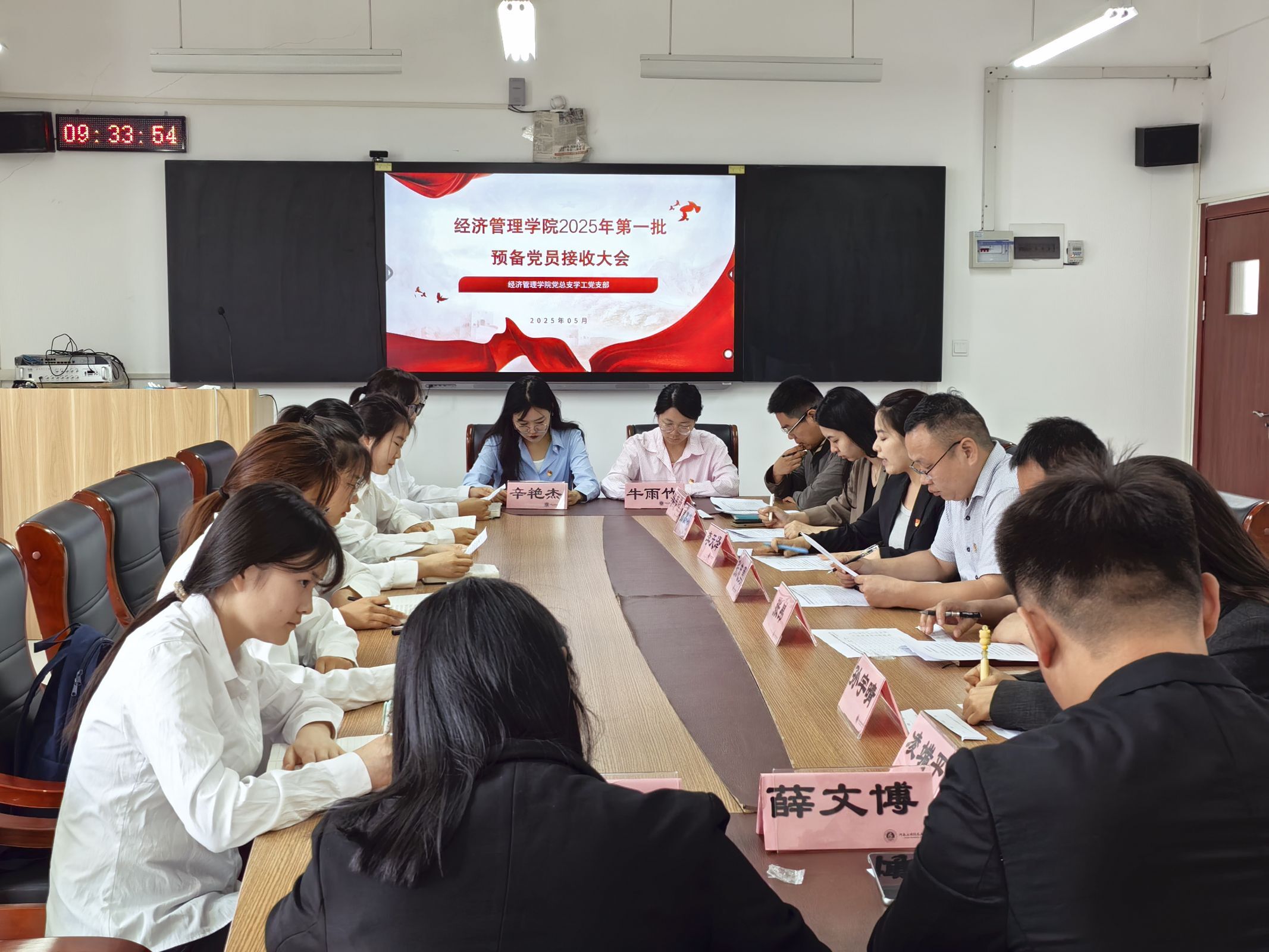 会议第五项议程中,党总支书记张忠勇宣读支部大会决议,宣布接收张雨露等11名同志为中共预备党员。最后,张忠勇同志作总结发言。他充分肯定本次大会的程序规范与民主集中制原则,同时对新党员提出三点要求:一是坚定理想信念,永葆政治本色;二是强化理论学习,提升综合素质;三是岗位实习期间,积极配合辅导员与实习指导教师工作,在同学中发挥榜样力量。